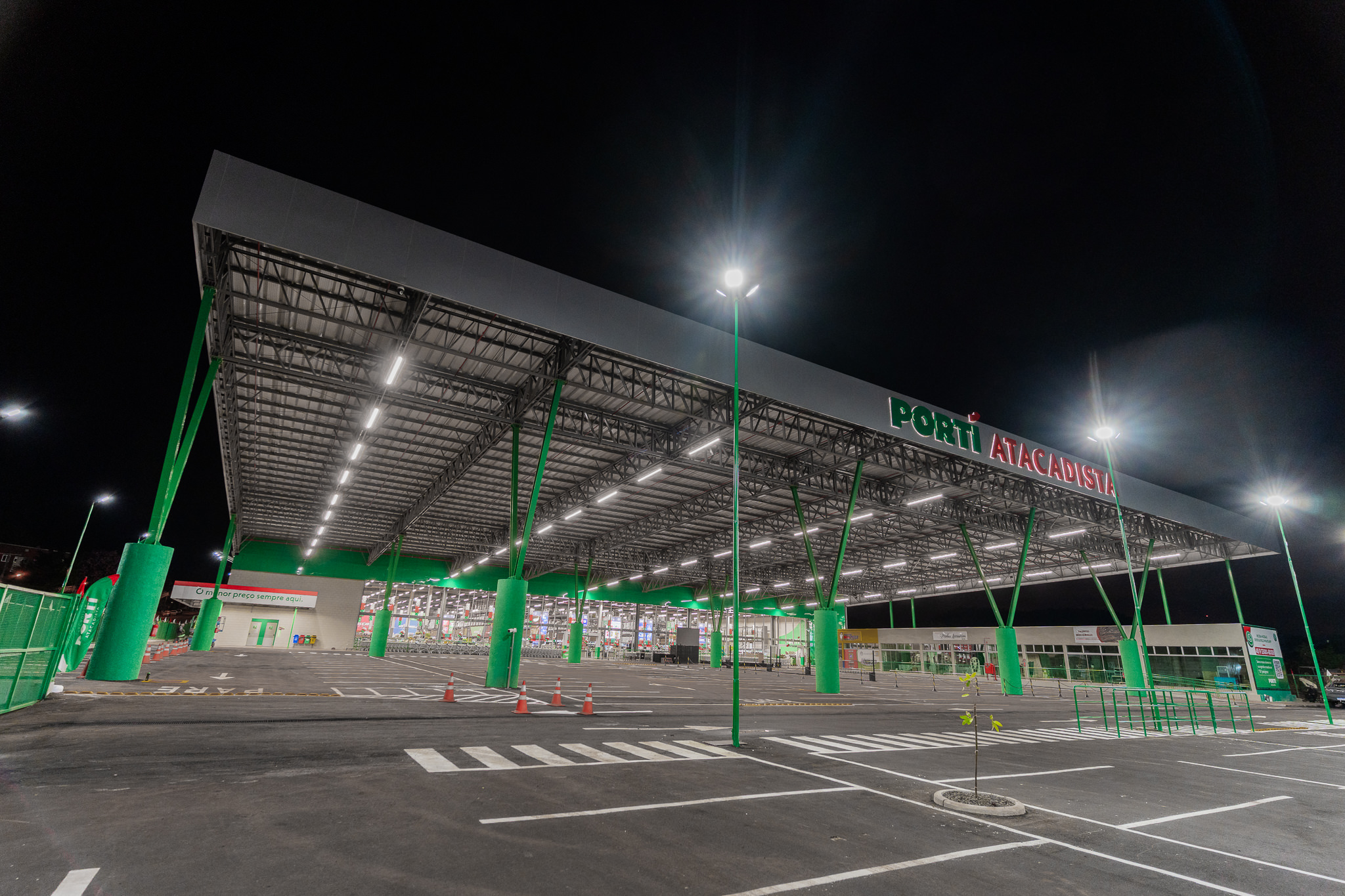 Com uma área total de 10.642,03m², o Portí Atacadista de Foz do Iguaçu é mais uma obra de impacto do Grupo Irani que contou com a precisão e controle técnico da Construtora Bastian e Lora ao longo de todas as etapas de sua execução. Desde a concepção até a entrega final, foram adotados processos construtivos que priorizam eficiência operacional e controle de qualidade.